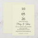 A modern minimalist wedding invitation featuring a soft creamy white (blanc cassé) background and elegant typography. The vertical date layout creates a unique and sophisticated design that is perfect for contemporary weddings. This timeless invitation combines simplicity and elegance, making it ideal for couples who love clean and refined aesthetics.