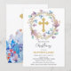 © 2023 Socialite Designs & LICENCORS. Belle invitation au baptême ou au baptême avec croix d'or, cadre doré et fleuri. Une merveilleuse invitation à la famille et aux amis invitations d'assister à l'événement et à la réunion après.