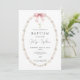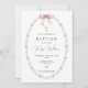 Belles invitations au baptême avec des perles délicates et avec arc rose. Retournez notre invitation pour voir un retour de coordination pour une touche spéciale supplémentaire. Visitez notre boutique pour voir toute notre collection religieuse.