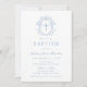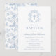 Invitation Élégant Croix Florale Vintage Bleu Baptême