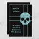 Un magnifique crâne de vampire dans les tons bleu doux sur les invitations noires de la fête. Ils peuvent être reformulés pour n'importe quelle occasion.