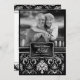 Élégantes invitations d'anniversaire de mariage de 25 ans en damassé noir et argent. Ajoutez votre propre photo.