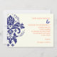 Invitation Elégant damassé bleu marine, corail, ivoire mariag