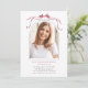 Invite friends and family to celebrate the graduate with this elegant invitation, featuring a deep blush ribbon bow with a arch photo.