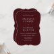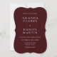 This deep burgundy wedding invitation with monogram initials and bracket corner detailing is a standout choice for couples who want something classic, refined, and full of character. The bracket corner style frames the design with a structured and sophisticated border that adds a formal and vintage inspired touch to the overall layout. The couple's monogram initials are worked into the design adding a personalized and upscale feel that makes this invitation look and feel like a luxury piece. The rich deep burgundy color gives the whole design a warm, dramatic, and romantic look that works beautifully for old money weddings, dark romance weddings, formal church weddings, ballroom receptions, fall weddings, and winter weddings. The bracket corner detail also makes it a great fit for couples going for a vintage, classic, or art deco inspired wedding aesthetic. Pairs perfectly with the matching burgundy RSVP card, welcome sign, table numbers, napkins, and seating chart to complete your full coordinated wedding suite.