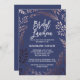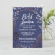 Cette élégante carte d'invitation pour déjeuner d'or rose et de mariée marine est parfaite pour un wedding shower élégant. Le design se compose d'un cadre feuilleté rose vif sur un arrière - plan bleu foncé et d'une police cursive éblouissante. Remarque : Ce design ne présente pas de véritable feuille d'or rose. C'est un graphisme de haute qualité fait pour ressembler à de l'or rose chatoyant.