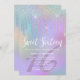 Jolie invitation à la fête de 16 ans Sweet, belle, fille et moderne, avec des gouttes de faux losange et une police de calligraphie élégante.