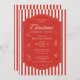 Élégant Corporate Christmas Dinner Party Holiday Invitations présentent des éléments blancs de Noël simples sur un arrière - plan rayé rouge et blanc avec le texte "Christmas Dinner Party" dans élégant script de calligraphie blanche typographie. Elégant, tendance et chic pour votre fête de vacances d'entreprise. Créé par Evco Studio www.zazzle.com/store/evcostudio