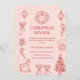 Invitation Élégant dîner de Noël rouge sur rose pâle