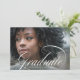 Cette élégante invitation à la remise des diplômes présente la photo personnelle du diplômé sur le devant, avec une superposition tourbillonnant de calligraphie en écriture blanche. Les informations de votre fête se retrouvent sur le dos d'un arrière - plan rose vif.