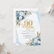 Invitation Elegant Dusty Blue 90th Birthday Floral Script