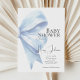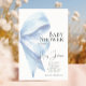 Invitation Elégant Dusty Blue Bow Aquarelle Baby shower Garço