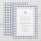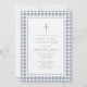 Elegant Dusty Blue Gingham Boy First Communion Invitation.