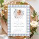 Elegant Dusty Blue Gingham Photo Girl Baptism Invitation. For best results upload a square image of the baby.