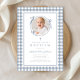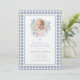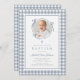 Invitation Elegant Dusty Blue Gingham Photo Girl Baptism
