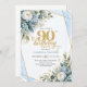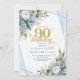 Invitation Elegant dusty blue gold frame floral 90th birthday