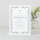 Invitation Elegant Dusty Blue Hand Drawn Floral Frame Baptism
