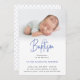 Invitation Élégant Dusty Blue Pastel Script Baptême Photo Dan
