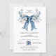 Timeless dusty blue wedding invitation with a romantic oversized bow, delicate watercolor florals in soft blues/whites, and elegant white rose accents. Classic calligraphy layout for easy personalization of names, date, time, venue & RSVP. Perfect "something blue" for sophisticated, romantic weddings — airy, luxurious, and fully customizable! 💙🤍