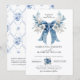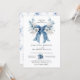 Invitation Elegant Dusty Blue White Rose Floral Bow Wedding