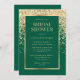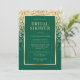 Elegant emerald green and gold bridal shower invitations featuring gold confetti.