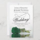 Cette belle faire-part de mariage est ornée d'une superbe photo d'un seul rose vert émeraude à long tige allongé sur son côté, se reflétant dans un bassin d'eau avec vagues et ondulations. Le design se compose d'un script de calligraphie sophistiqué avec une longue queue bouclée, ce qui le rend à la fois moderne et classique. Une façon élégante, sophistiquée et chic d'invitation vos amis et votre famille à partager dans votre journée spéciale. Le dos de la carte est une forêt profonde marbrée ou couleur vert émeraude avec un motif moelleux.