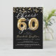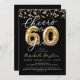 Célébrez un 60e anniversaire avec ces invitations élégantes et festives en noir et or avec le titre CHEERS TO 50 YEARS en faux numéros de ballon d'or métallique et typographie de script moderne avec des serpentins d'or et des confettis et lumières blanches. ASSISTANCE : Pour obtenir de l'aide sur la modification ou la personnalisation de la conception, le changement de couleur, le transfert de la conception vers un autre produit ou si vous souhaitez coordonner des éléments, contactez le concepteur AVANT de commander par Zazzle Conversation ou par courriel makeitaboutyoustore@gmail.com.