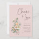 Célébrez la future mariée avec cette élégante et élégante invitation à la douche nuptiale avec une phrase "Cheers to Love" en couleur cafetière, nom personnalisé et détails de douche nuptiale en couleur cafetière, éléments d'aquarelle fleurie dans les couleurs pastel, et un arrière - plan rose poussiéreux. Cette invitation est parfaite pour une douche nuptiale moderne, romantique et sophistiquée. Il est également parfait pour une douche nuptiale printanière ou estivale, car les éléments fleuris et l'arrière - plan rose poussiéreux évoquent la beauté de la saison.