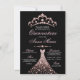 Invitations modernes mais élégantes de Quinceañera Mis Quince Anos. Parties scintillant diamant tiara / couronne et robe / robe. Couleurs claires rose et noir. Facile à modifier les cartes modèles. Parfait pour la 15ème fête d'anniversaire de fille.