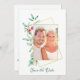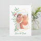 Photo élégante Sauvez la Date avec de beaux eucalyptus. Personnalisez avec votre propre photo 5X7 sur le devant et le message sur le dos.