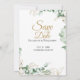 This sophisticated wedding invitation features delicate watercolor eucalyptus leaves and lush greenery paired with modern gold accents. The clean, white background and elegant gold typography create a timeless look perfect for outdoor, garden, or botanical-themed weddings. Fully customizable with your own event details.