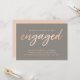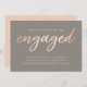 Cette élégante et simple faire-part fiançailles présente une police de script de faux papier dans une jolie palette de couleur or gris et rose.