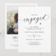Invitez les invités à célébrer le couple heureux avec ces élégantes invitations de fête de fiançailles. Conçues dans un style minimaliste moderne noir et blanc, elles présentent une typographie script stylée et une mise en page simple et sophistiquée. La photo du couple au dos ajoute une touche personnelle, faisant de ces invitations élégantes et intemporelles parfaites pour organiser la célébration spéciale d'un couple fiancé.
