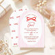 Create an unforgettable first celebration with this exquisite invitation in soft pink tones. The sophisticated design with delicate bows and classic stripes adds a special charm and a festive feel.