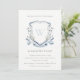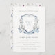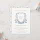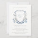 Invitation Élégant Fleur sauvage Bleu Monogramme Crest Baptêm
