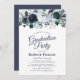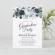 Invitation Elégant Floral Aquarelle Blue Graduation Party