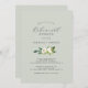 Cette élégante invitation à la répétition à la menthe à la sauge blanche est parfaite pour une répétition mariage classique. Le design vintage moderne présente de magnifiques rose de couleur d'ivoire et crème et des fleurs de pivoine avec des feuilles vert foncé, de la verdure et des botaniques.