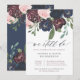 Invitation Élégant floral marine et prune | Renouvellement de