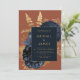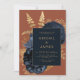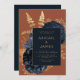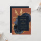 Invitation Elégant Floral Navy Blue Gold Rust QR Code Mariage