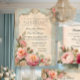 Fleurs à la française de style Vintage et suite éphémère en bleu français poussiéreux, rose vif, crème et vert sauge. Elegant Peonies, roses antiques et jardin cueillaient des fleurs aux couches vieilles et en détresse, donnant à cette invitation le sens de l'élégance et de l'antiquité. Graphiquement conçu par Audrey Jeanne Roberts, msp0118