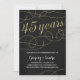 Cette invitation de fête d'anniversaire de mariage de 45 ans élégante et sophistiquée présente des fioritures vintage élégantes, une calligraphie script qui lit "45 ans", un faux or feuille, et un fond noir chic.
