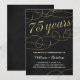 Cette invitation de mariage de 75 ans de mariage élégante et sophistiquée présente des fioritures vintage élégantes, une calligraphie qui lit "75 ans", un faux feuillet or, et un fond noir chic.