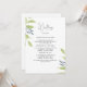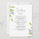 Elégant Eucalyptus Foliage Détails Mariage Invitation. Typographie noire. Fond blanc. Hébergements. Site mariage. Deux Hôtels.