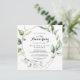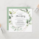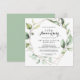 Cette invitation d'anniversaire de mariage de 50 ans élégante et géométrique en or est parfaite pour une célébration d'anniversaire simple. Le design présente des feuilles de eucalyptus vert botanique peintes à la main, ornant un cadre géométrique doré. Changez le nombre pour célébrer n'importe quel anniversaire de mariage.