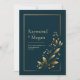 Set a tone of understated luxury with this sophisticated design. The background is a deep, rich midnight blue, providing a dramatic canvas for a single, graceful golden botanical sprig that ascends from the corner. The leaves feature a fine, engraved texture, and delicate golden buds are scattered along the slender stems. A minimalist double gold border frames the entire composition, adding a final touch of modern elegance. The high-contrast metallic gold against the dark backdrop creates a chic and timeless aesthetic. This invitation is perfect for a formal evening wedding, a modern minimalist celebration, or any event where a touch of sophisticated glamour is desired.