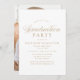Invitations élégants de la fête de remise de diplômes présentant les détails de votre fête de remise de diplômes avec écriture de script de calligraphie d'or. L'invitation de la simple fête de remise de diplômes s'inverse pour montrer la photo de fond de sang du diplômé. L'invitation de la fête de graduation en calligraphie est parfait pour les diplômés du secondaire et du collège!