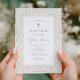 Celebrate your child’s sacred day with this elegant gold floral baptism invitation, featuring a timeless botanical border, graceful typography, and a classic gold cross. Perfect for a girl’s baptism, christening, or dedication, this refined design offers a beautiful balance of faith and sophistication.