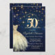 Invitation Elégant Gold Stars habiller Marine bleu 50e annive