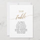 Ces élégantes cartes de sièges de table haute en or sont parfaites pour un mariage simple. Le design neutre présente une carte minimaliste décorée avec une typographie romantique et fantaisiste de feuille d'or. La carte s'imprime à l'avant et à l'arrière (double face).