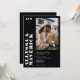 Élégant Gras simple blanc sur faire-part de mariage photo noir avec une police moderne en gras, une photo et un tout en un détail à l'arrière avec code qr.